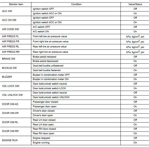 NOTE: When voltage of battery power supply is approximately 9 V or more, combination switch reading function returns to normal operation.