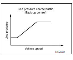 When the A/T fluid temperature drops below the prescribed temperature, in order to speed up the action of each friction element, the line pressure is set higher than the normal line pressure characteristic.