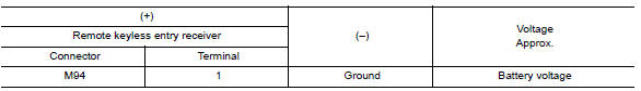 Check voltage between remote keyless entry receiver harness connector and