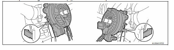 - Disconnect the harness connectors (A) and (B) from the spiral